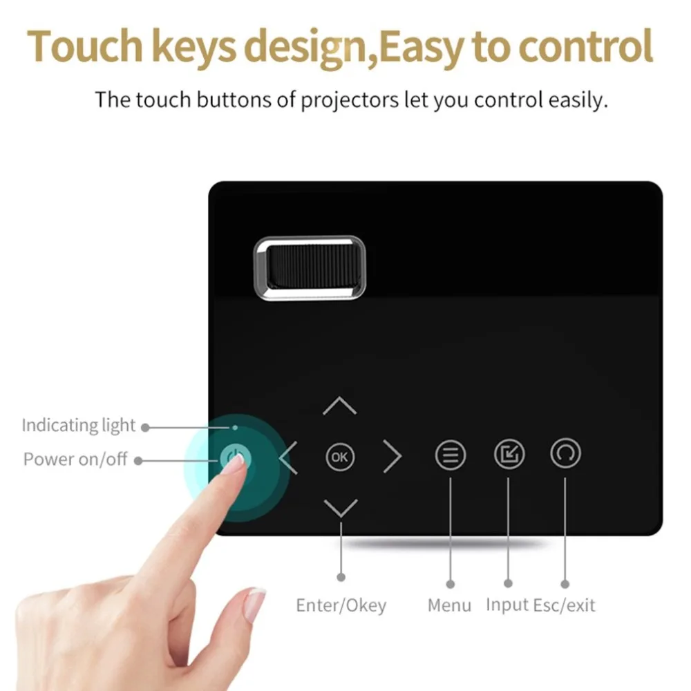 Mini Micro LED Cinema Portable Video HD USB HDMI Projector for Home Theater Short Focus Design T200